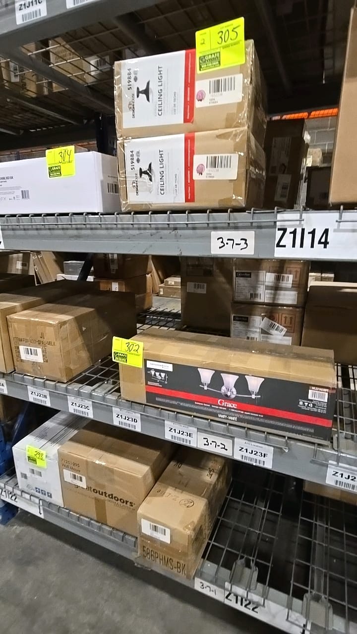 The warehouse auction took place a couple of weeks after the showroom auction and was much different in scale as well as type of items sold. Lots consisted of boxes and pallets of new lighting fixtures at a larger scale than the showroom. Average lot prices were higher, likely due to the number of items per lot (ie. boxes of multiple lighting fixtures vs. single fixtures), plus the type of items available, like the forklift at the warehouse auction. Here are the numbers: