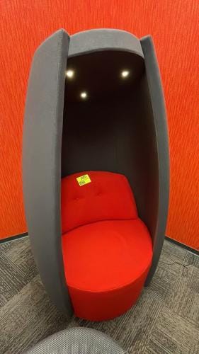 In addition to high-value items, some standout assets included sound-dampening portable lounge pods ($375 each), a Wesco conventional pallet jack ($850), and vintage Shell chairs by Hans Wegner ($350 each).