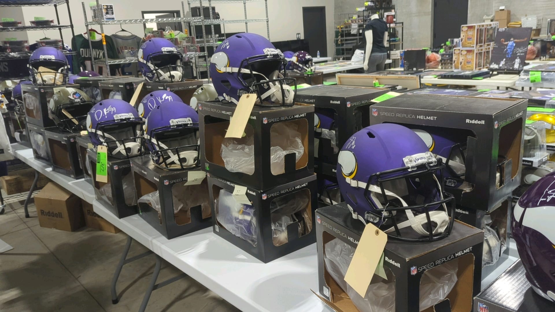 The inventory spanned multiple sports categories: 152 baseball items, 64 football pieces, 62 basketball collectibles, and 49 hockey items. Authenticated signatures from current stars like Justin Jefferson and Byron Buxton joined legendary names like LeBron James, creating appeal across different collector segments and price points.