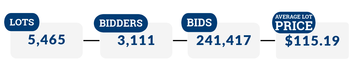 The total numbers listed below are from all of the auctions Grafe Auction did for Staples in 2023 and 2024.