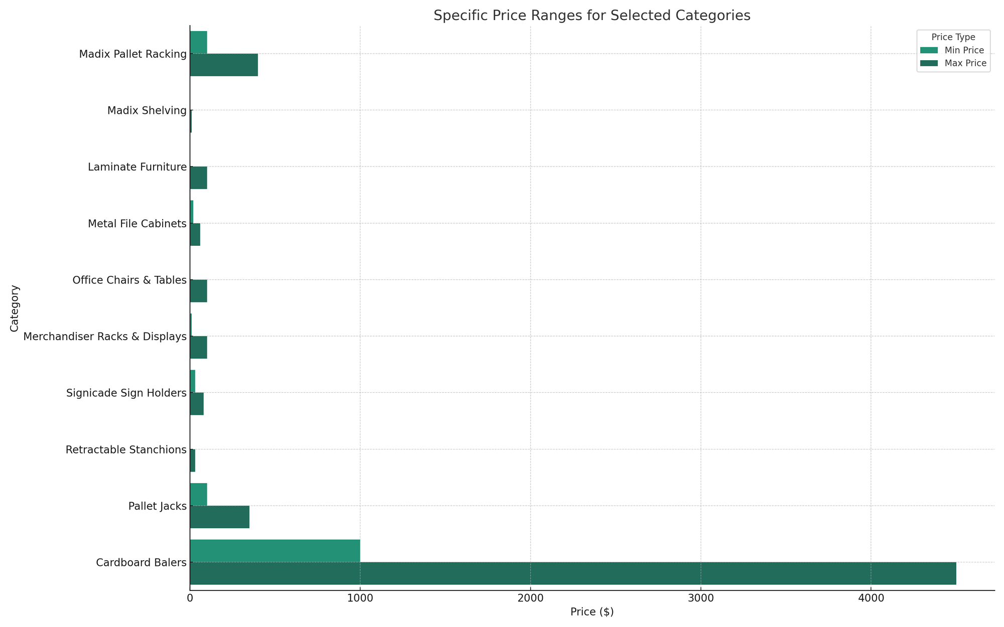This chart focuses on specific categories that stood out in the auction data. For each category, it highlights the minimum and maximum prices that correspond to the price ranges. From the data mentioned above and in this chart, cardboard balers were easily the highest-priced selling item throughout the auctions.
